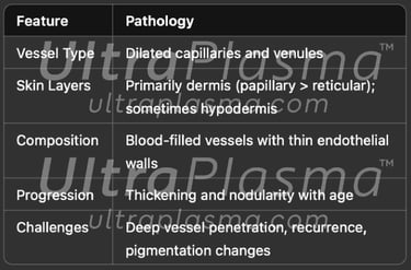 Port-Wine Stain (PWS), or nevus flammeus, is a congenital capillary malformation characterized by ectatic dermal blood vessels. Traditional laser treatments often result in incomplete clearance and high recurrence rates. The UltraPlasma™ multi-platform system, combining arc plasma, argon plasma, and helium plasma technologies, offers a novel, non-thermal, minimally invasive approach for PWS treatment. Through controlled plasma-mediated photochemical and photothermal interactions targeting the epidermis, dermis, and hypodermis, UltraPlasma™ facilitates vascular coagulation, vessel remodeling, fibroblast activation, and immune modulation via reactive gas species like ozone (O₃) and nitric oxide (NO). This article explores the mechanisms of UltraPlasma™ in PWS treatment, cross-sectional skin interactions, gas effects, and clinical outcomes, supported by detailed figures.